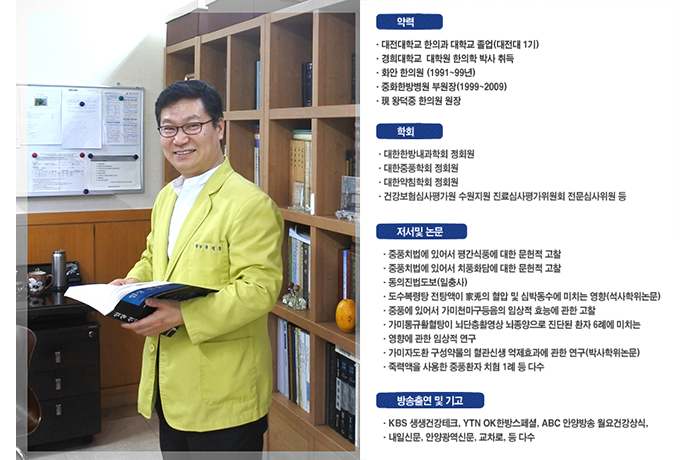 구안와사는 한방진료에 있어서 대표적인 질환으로 건강보험심사평가원 자료에 의하면 해마다 20만 명 가까이 달하는 환자가 진료를 받고 있는 비교적 흔한 편이고, 피로와 스트레스로 발병할 수 있는 질환인데다가 발병 연령대도 점차 낮아지는 추세이지만 갑자기 얼굴이 마비되면 대부분의 경우 당황하면서 양방병원을 먼저 찾게 되는데, 실제적으로 병원에서 스테로이드 외에 특별한 치료방법이 없는 게 현실입니다. 왕덕중 원장은 1988년도부터 임상진료를 시작한 이래로 약 10,000여 건의 구안와사를 진료한 풍부한 임상경험을 갖고 있습니다.